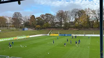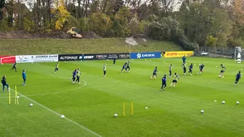 Viertel nach 2. Alois Schwartz leitet das Training. Der Pöbel ist auf dem Weg ins Krankenhaus. Schleudertrauma vom vielen Kopfschütteln